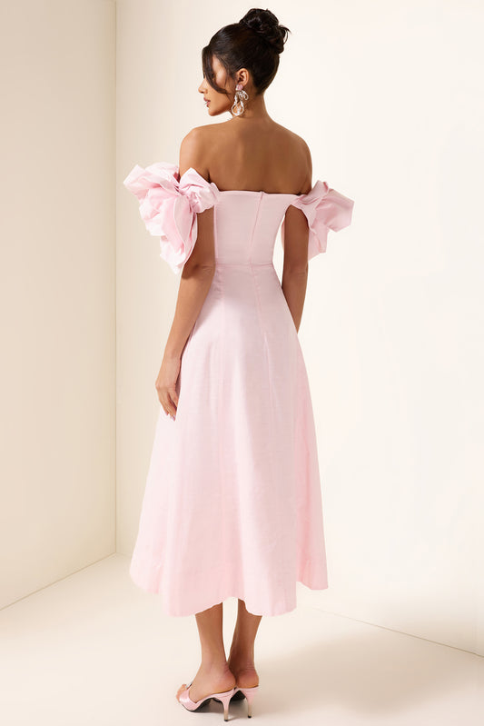 3D Flower Solid Off-Shoulder Midi Dress