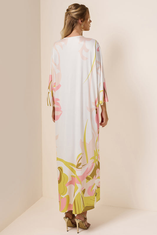 Abstract Print Long Sleeve Cut-Out Midi Dress
