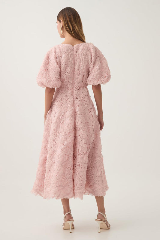 V-Neck Puff Sleeve Cut-Out Midi Dress