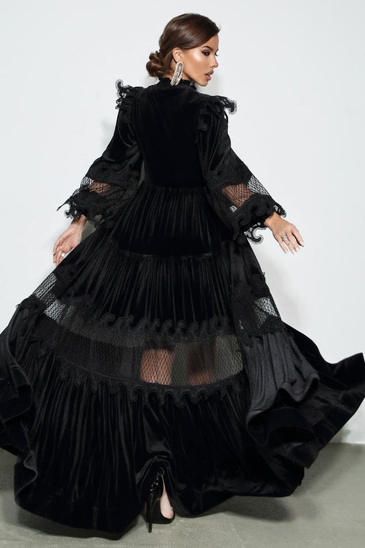 Velvet Bow Sleeveless Midi Dress With Gloves