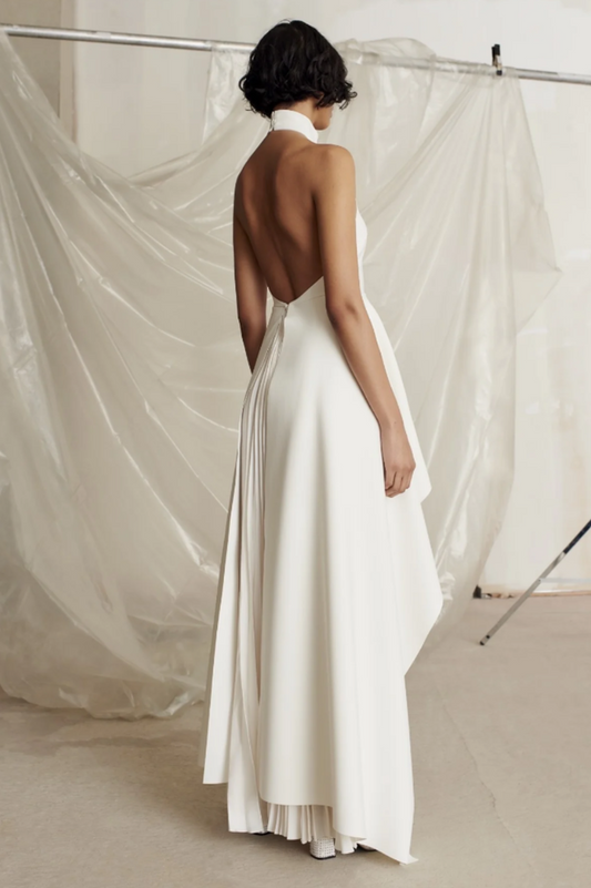 Crew Collar Sleeveless Backless Asymmetric Suit Dress