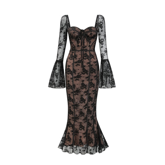 Marlene Black Flared Lace Maxi Dress