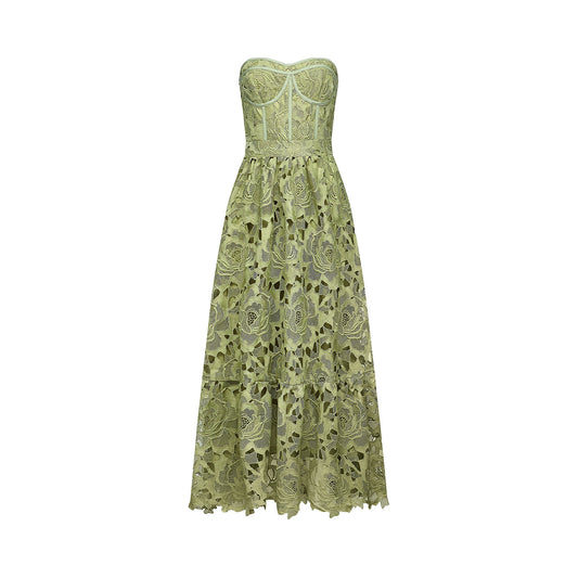Inès lace floral embroidered cut-out midi dress in Green