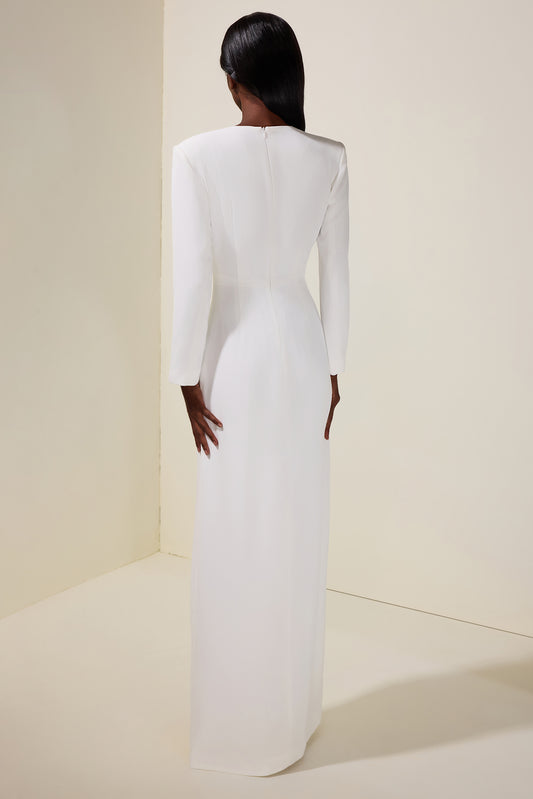 Athena wavy-pattern lace maxi dress in White