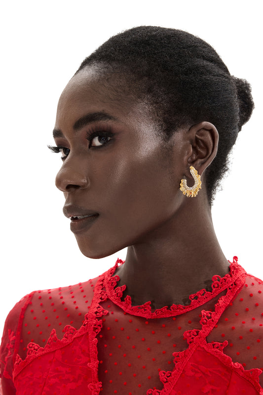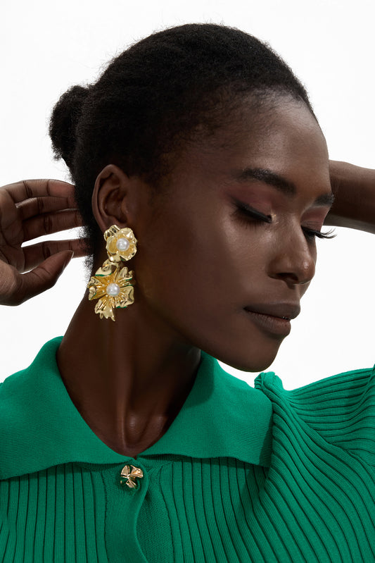 • Inlaid Faux Pearl Irregular Shape Earrings