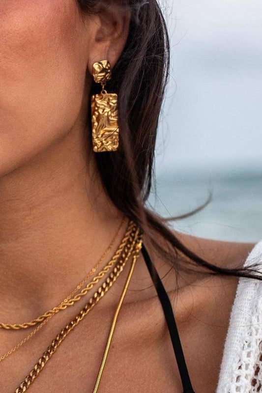 • Square Dimentional Purple Acrylic in Gold Tone Earrings & Necklace