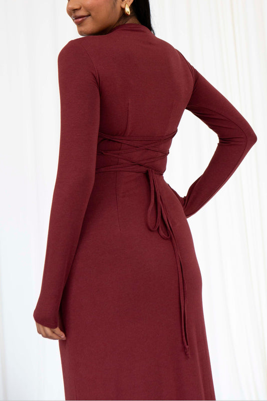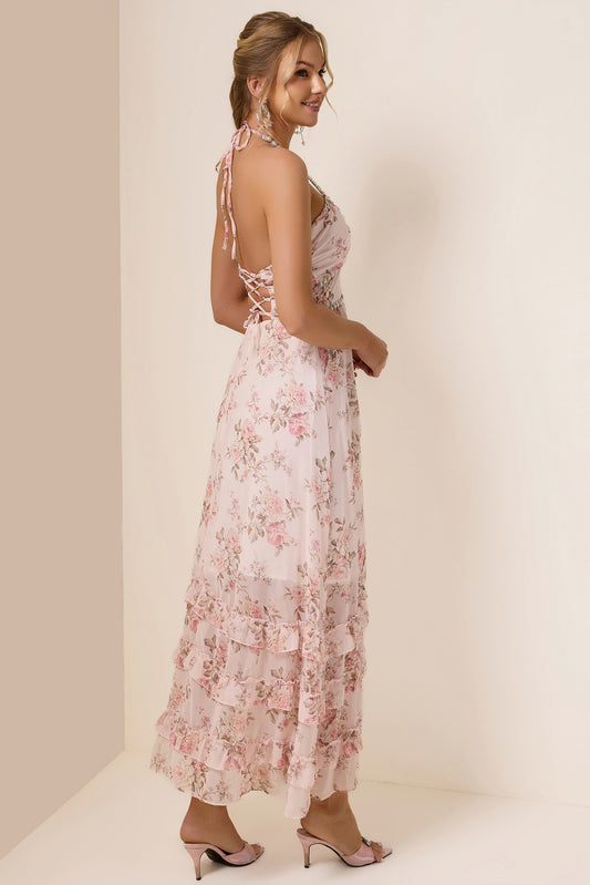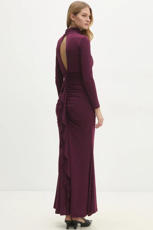 Crumpled Ruffle Long Sleeve Maxi Dress