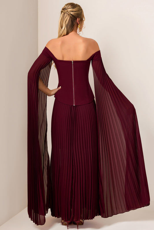 Solid Cape Sleeve Top & Pleat Maxi Skirt Set