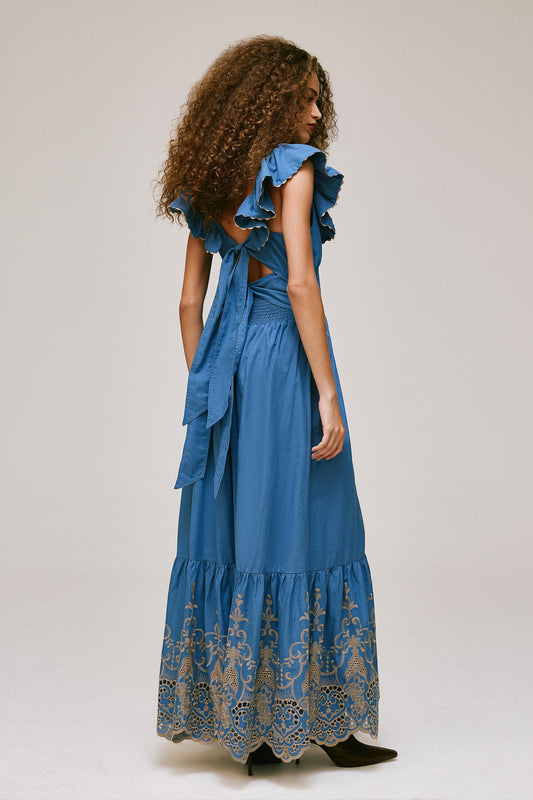 Embroidered Backless Slip Maxi Dress