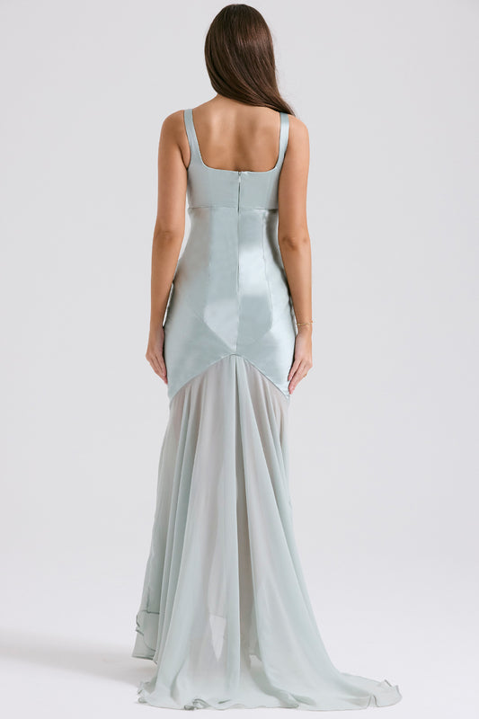Solid Satin Mesh Sleeveless Maxi Dress