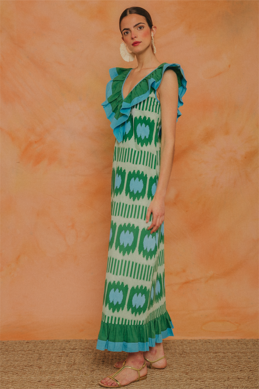 V-Neck Ruffle Sleeveless Maxi Dress