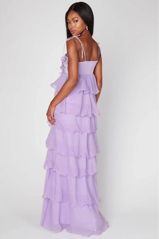 Embroidered Chiffon Ruffle Maxi Dress