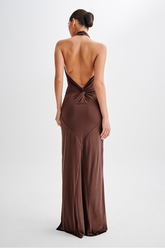Solid Knotted Halter Neck Maxi Dress