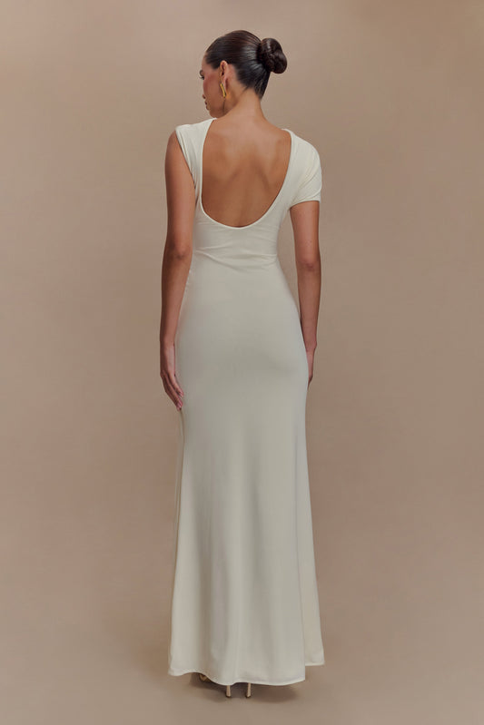Metal Flower Cut-Out Gathering Maxi Dress