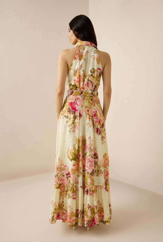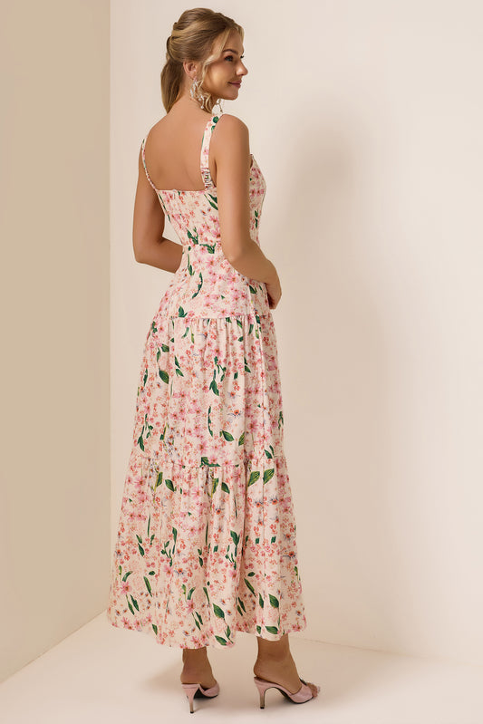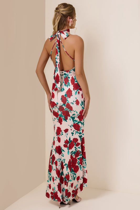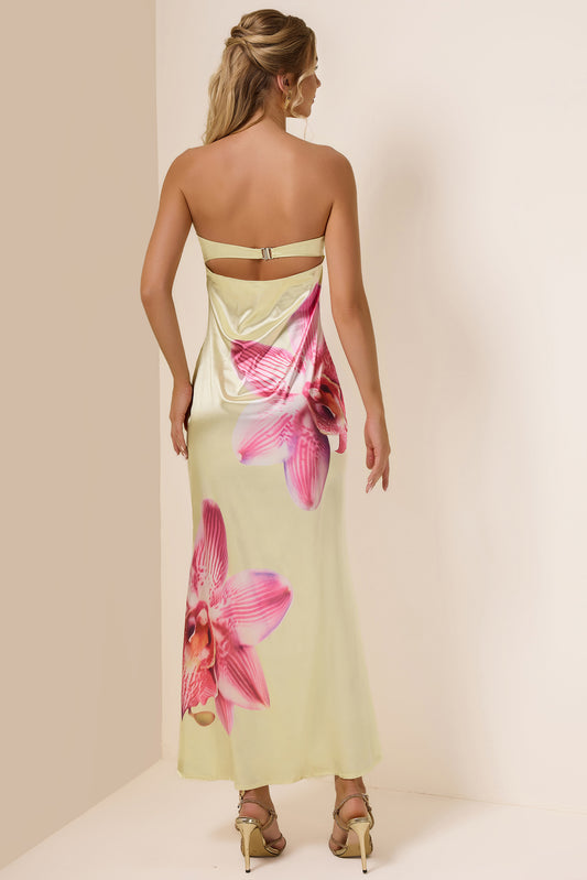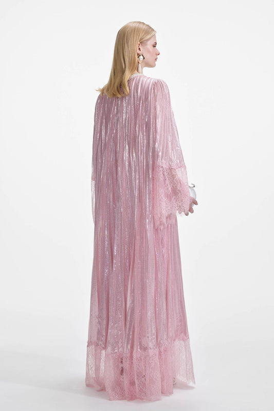 Lace Splicing Satin Faux Pearl Maxi Dress