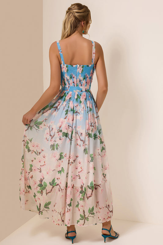 Off-Shoulder Pleat Split Solid Maxi Dress