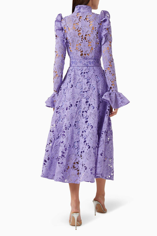 • Lace Ruffle Midi Dress With Belt