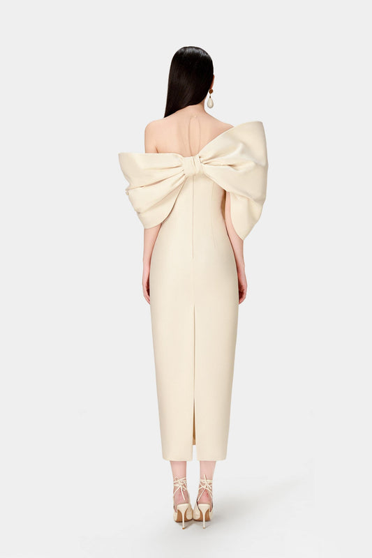 Bow Off-Shoulder Asymmetrical Midi Dress