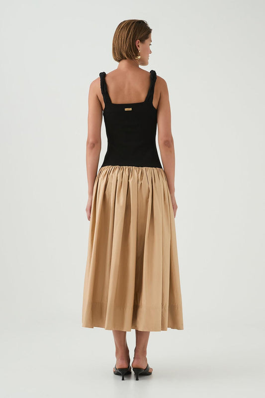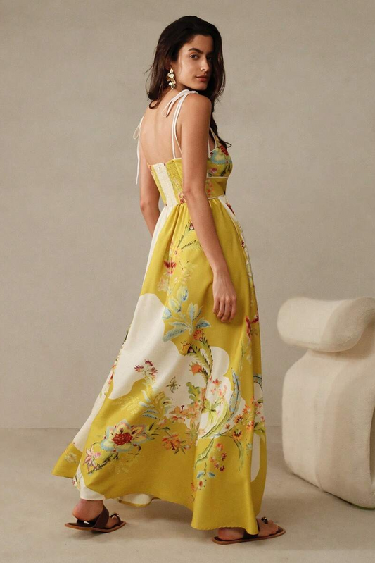 Satin Backless Knotted Bell Sleeve Midi Dress