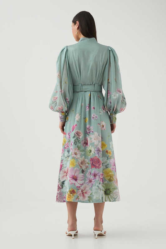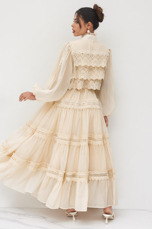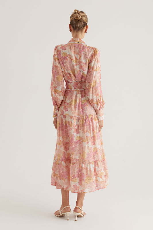 Ruffle Bow Shirt Collar Long Sleeve Midi Dress