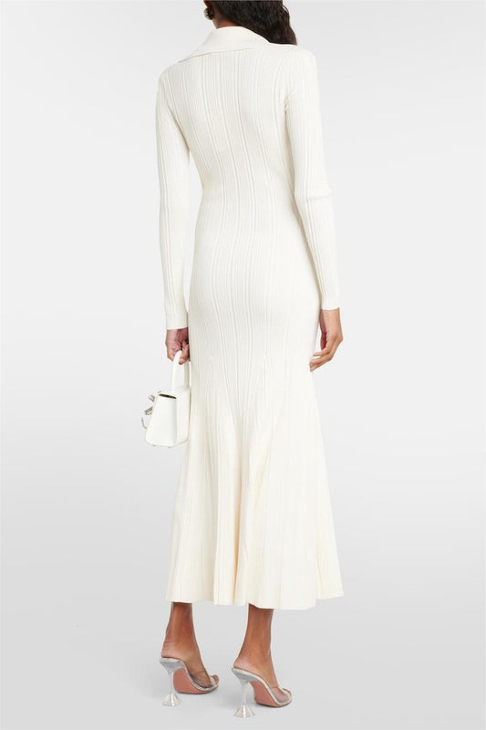 V-Neck Puff Sleeve Cut-Out Midi Dress