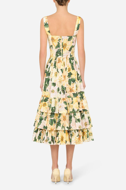 Floral Sleeveless Sweetheart Neck Midi Dress