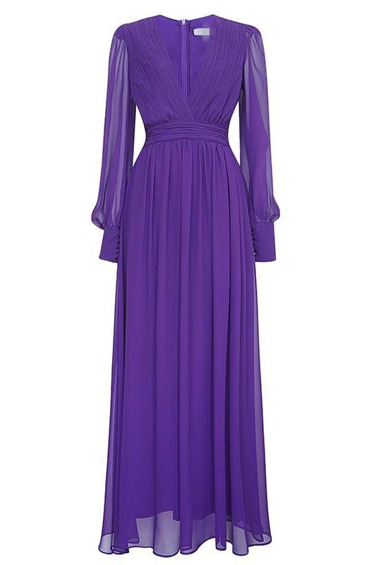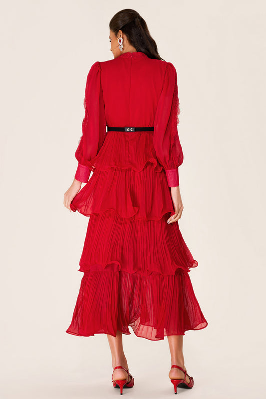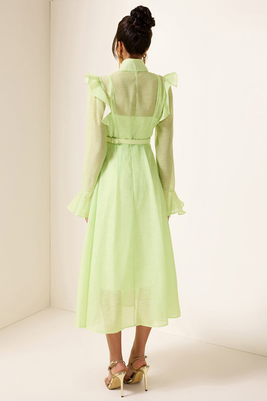 Chiffon V-Neck Lantern Sleeve Midi Dress