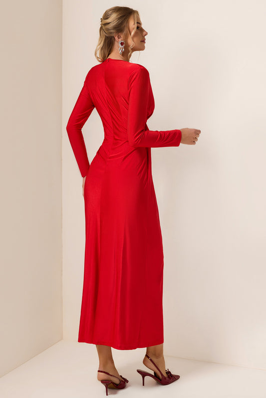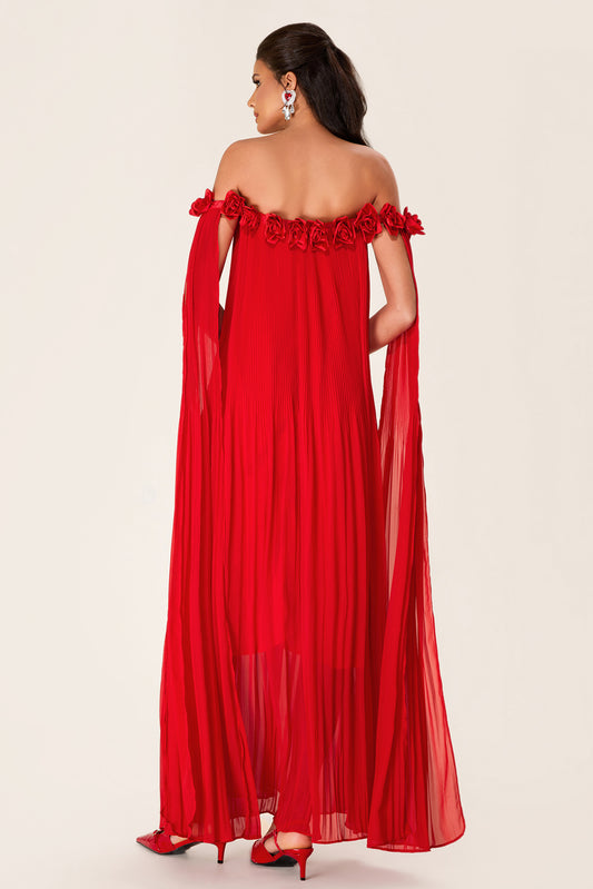 Bow Off-Shoulder Asymmetrical Midi Dress Red