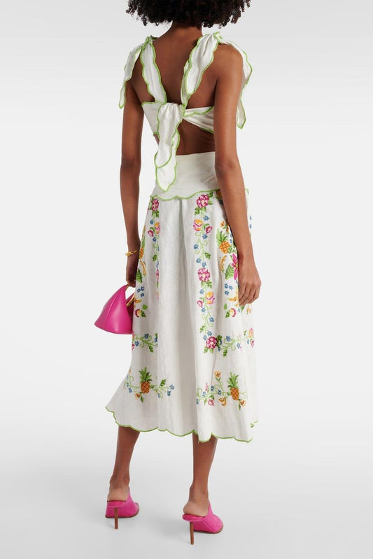 Embroidered Ruffle Off-Shoulder Midi Dress