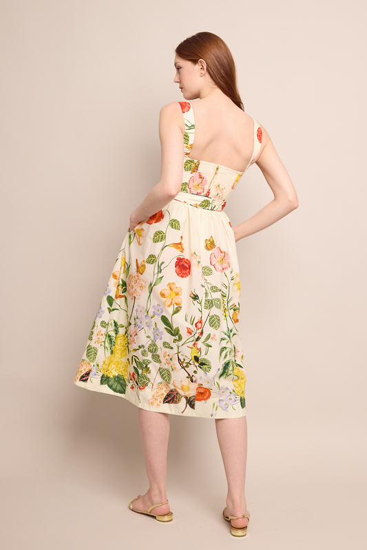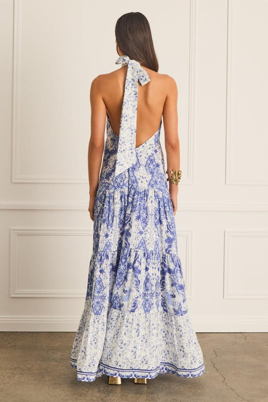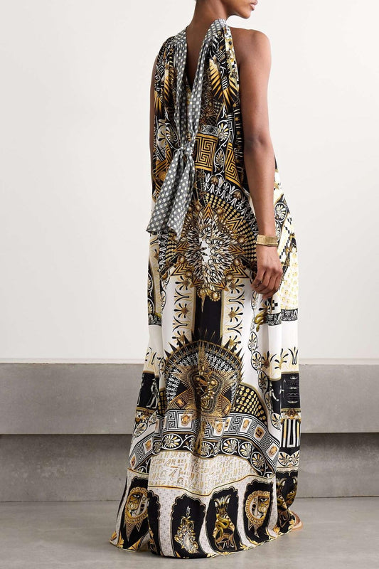Paisley Print Lace-Up Sleeveless Midi Dress