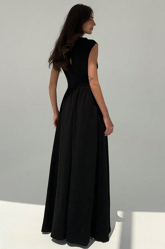Contrast Color One-Shoulder Sleeveless Midi Dress