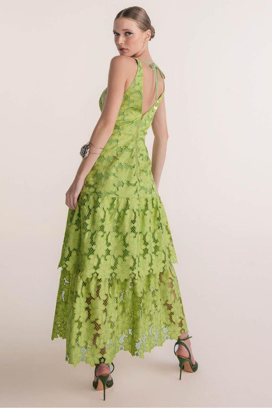 Solid Embroidered Ruffle Stand Collar Maxi Dress