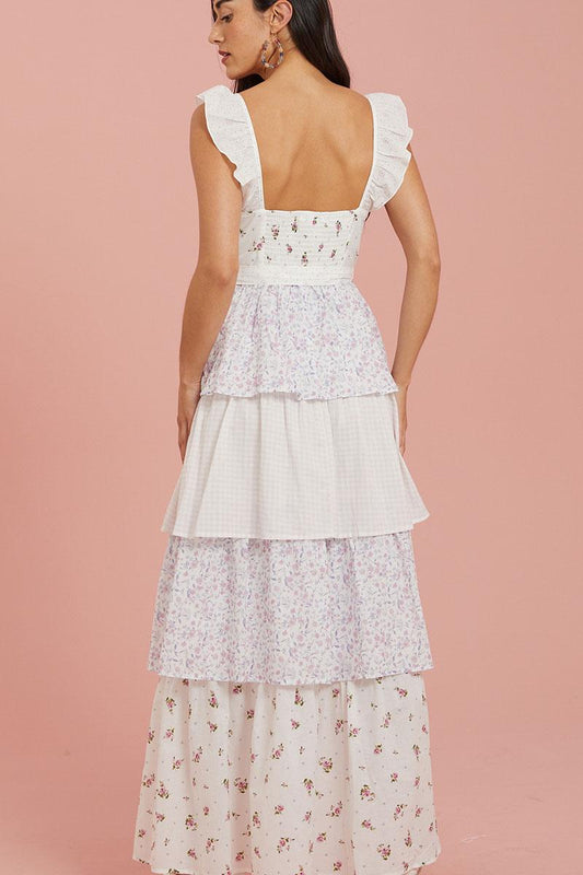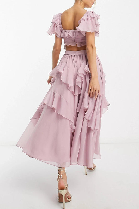 Ruffled Swallow Contrasting Collar Long Sleeve Split Midi Dress