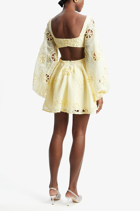 Cut-Out V-Neck Puff Sleeve Mini Dress