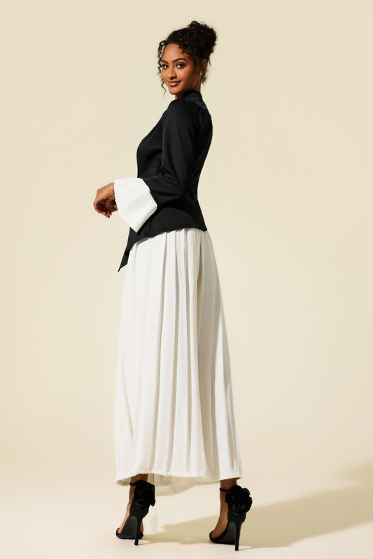 Solid Cape Sleeve Top & Pleat Maxi Skirt Set