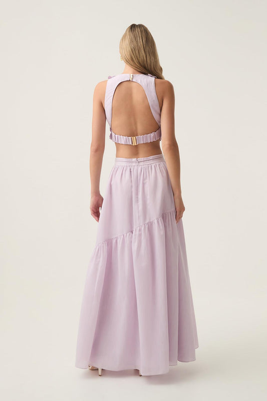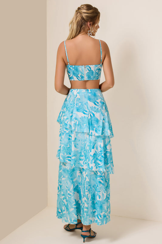Smocking Halter Neck Backless Top & Mid Waist Maxi Skirt Set
