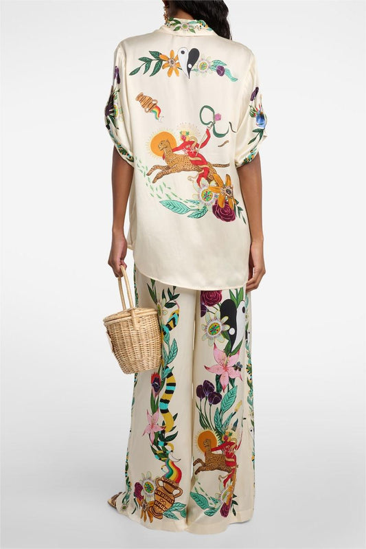 Animal Print Blouse & Mid Waist Wide Leg Pants Set