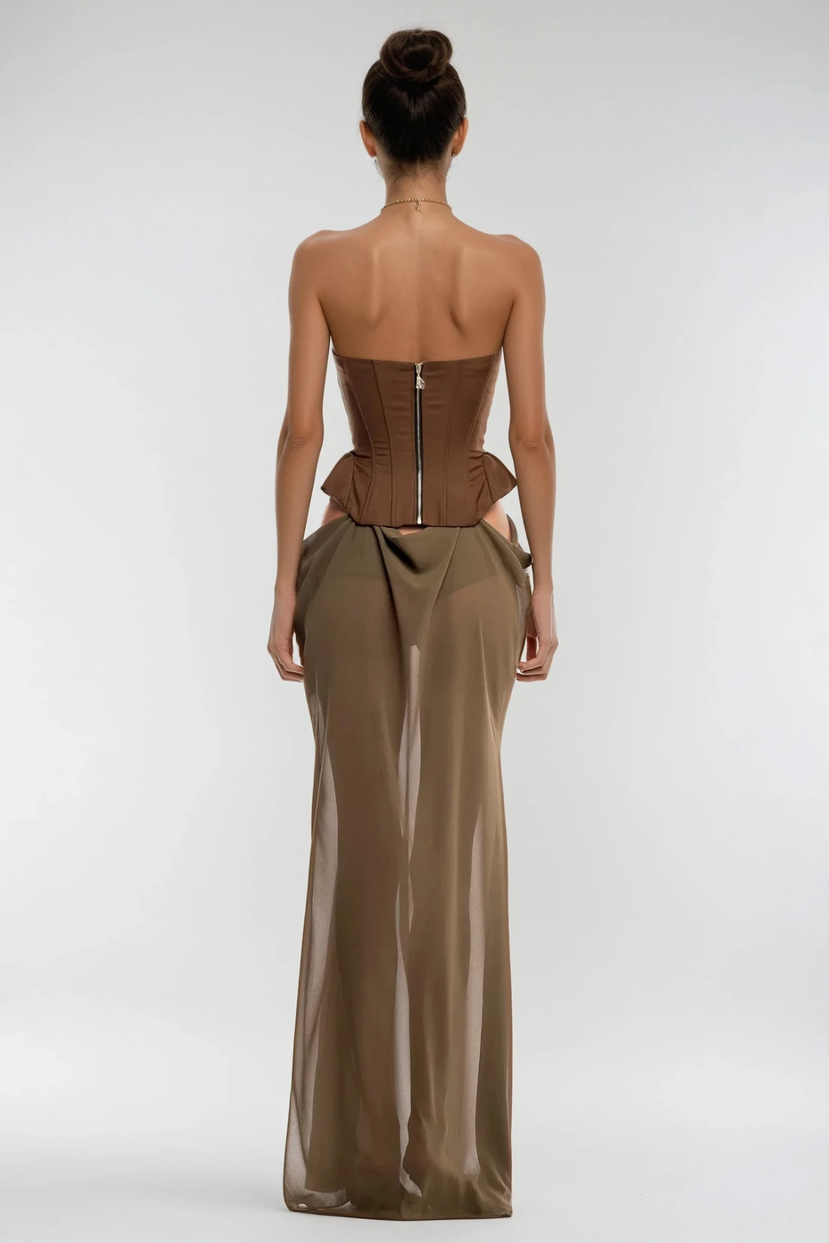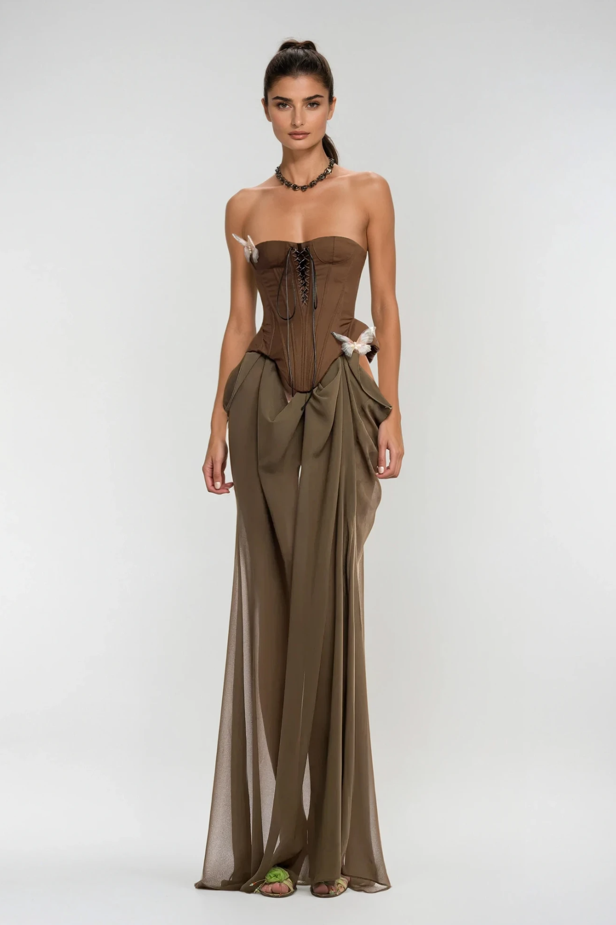 Ardelis Strapless Butterfly Lace Up Maxi Dress