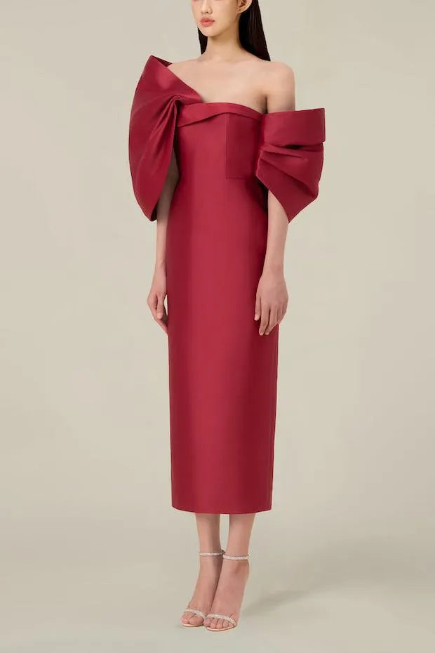 Bow Off-Shoulder Asymmetrical Midi Dress