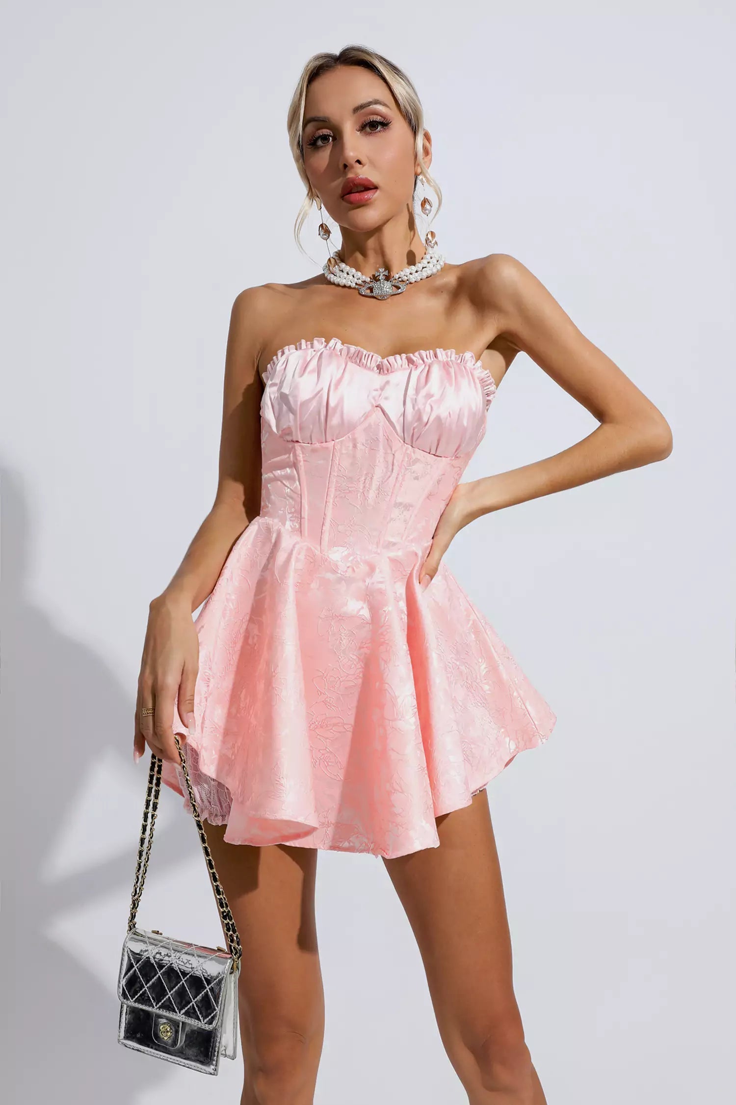 The Daleyza Pink Lace Jacquard Bandeau Dress is the perfect finishing touch to any outfit. Its lace fabric and super short length create a classic and timeless look, while the strapless design makes it ideal for any special occasion. Enjoy a sophisticated, feminine finish all night long. Configure a pair of high heels, which is undeniable and a perfect match.