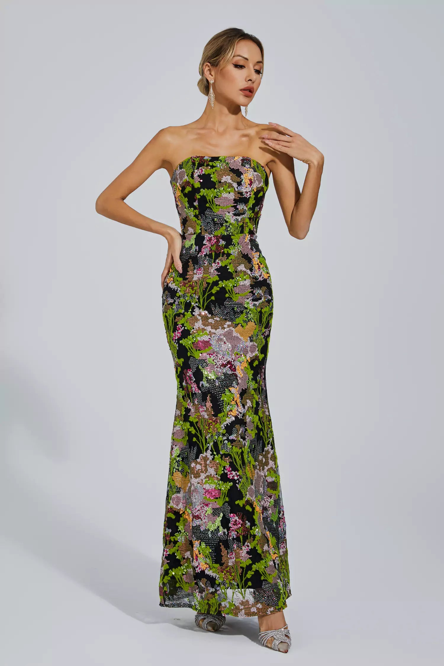 Add a touch of elegance to your wardrobe with our Elina Green Off-shoulder Sequin Dress. Perfect for formal events, this gown showcases a flattering off-shoulder silhouette and dazzling sequin embellishments. Whether attending a soirée or a wedding, this dress exudes sophistication and style. Embrace your inner fashionista and make a statement with our Elina Green Off-shoulder Sequin Dress.
