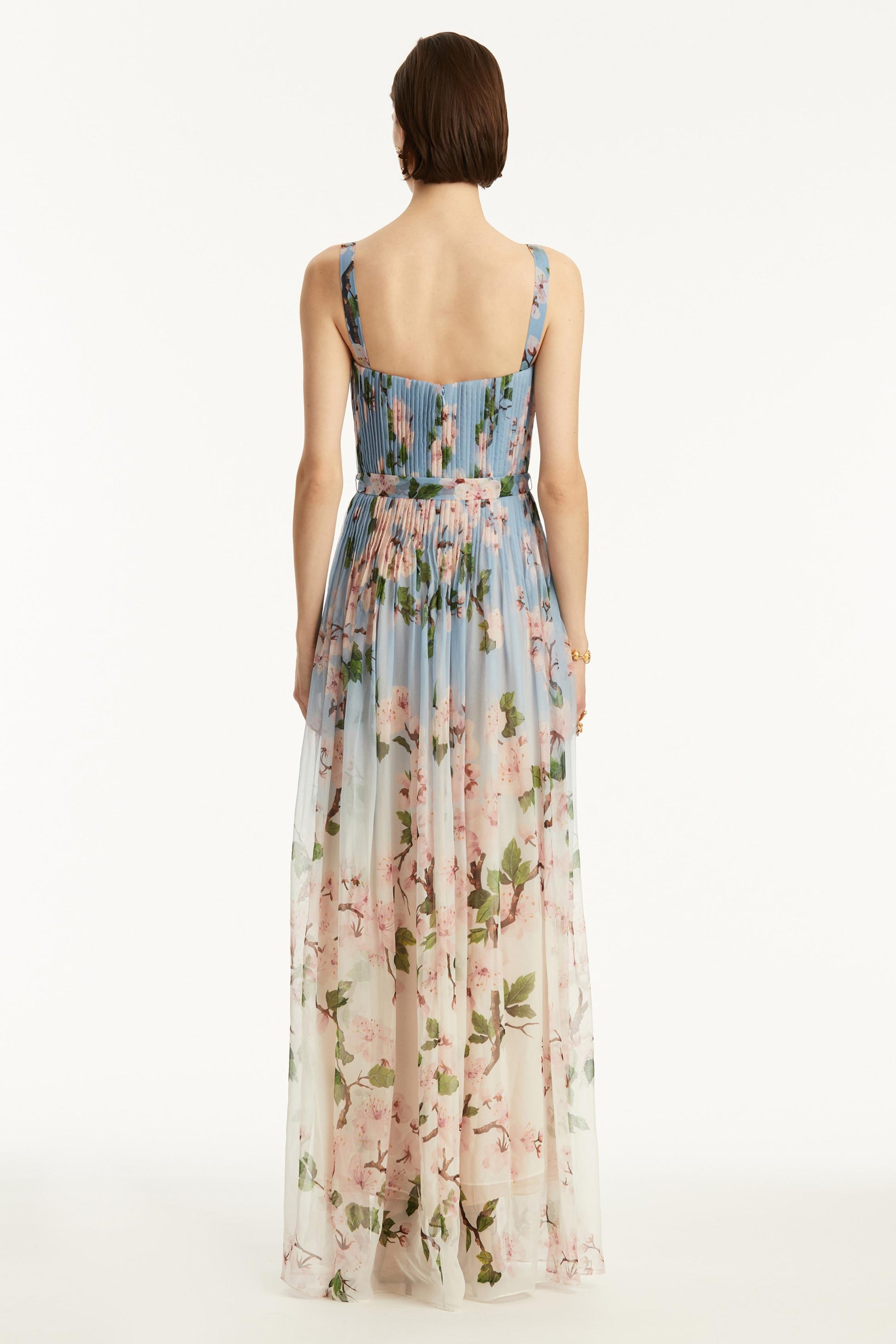 - Sleeveless, gradient color, blue, floral print, maxi dress
