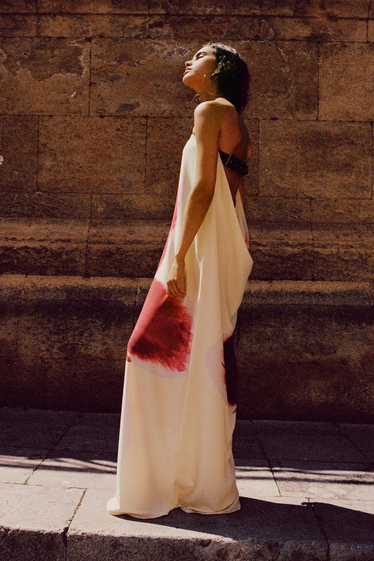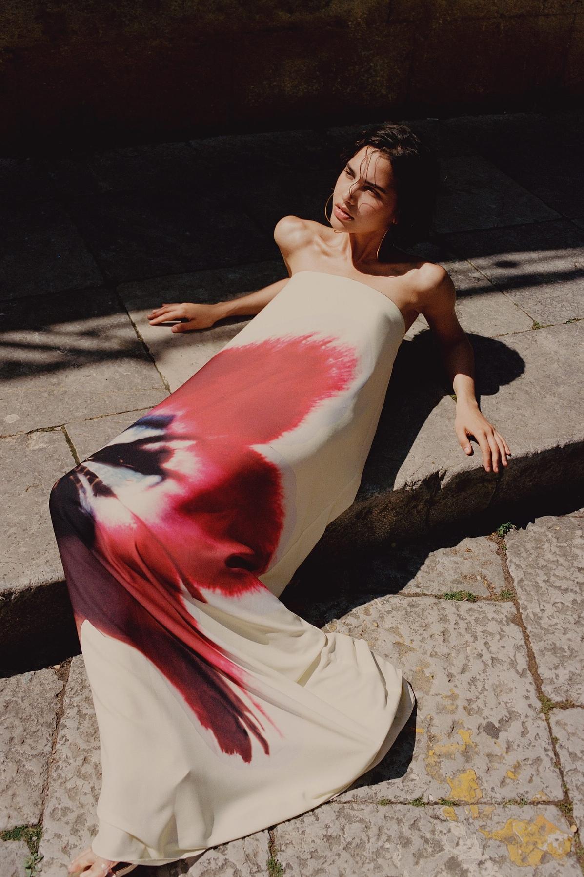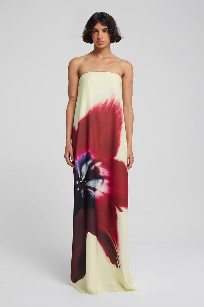 - Sleeveless, off shoulder, floral print, white, red, maxi dress
