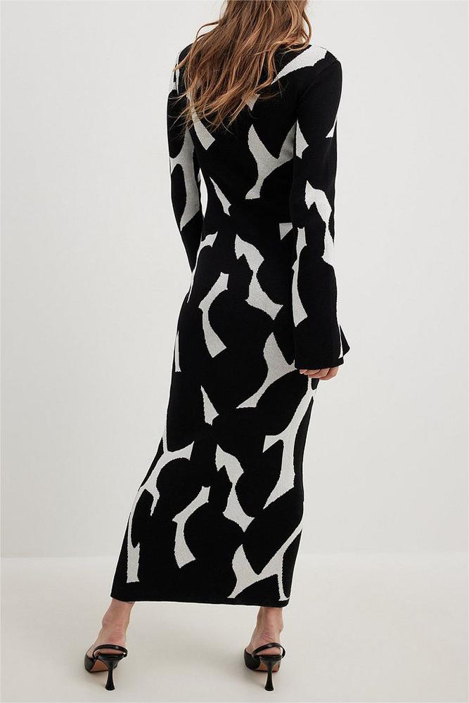 - Geometric pattern, knit, midi dress, black, long sleeve