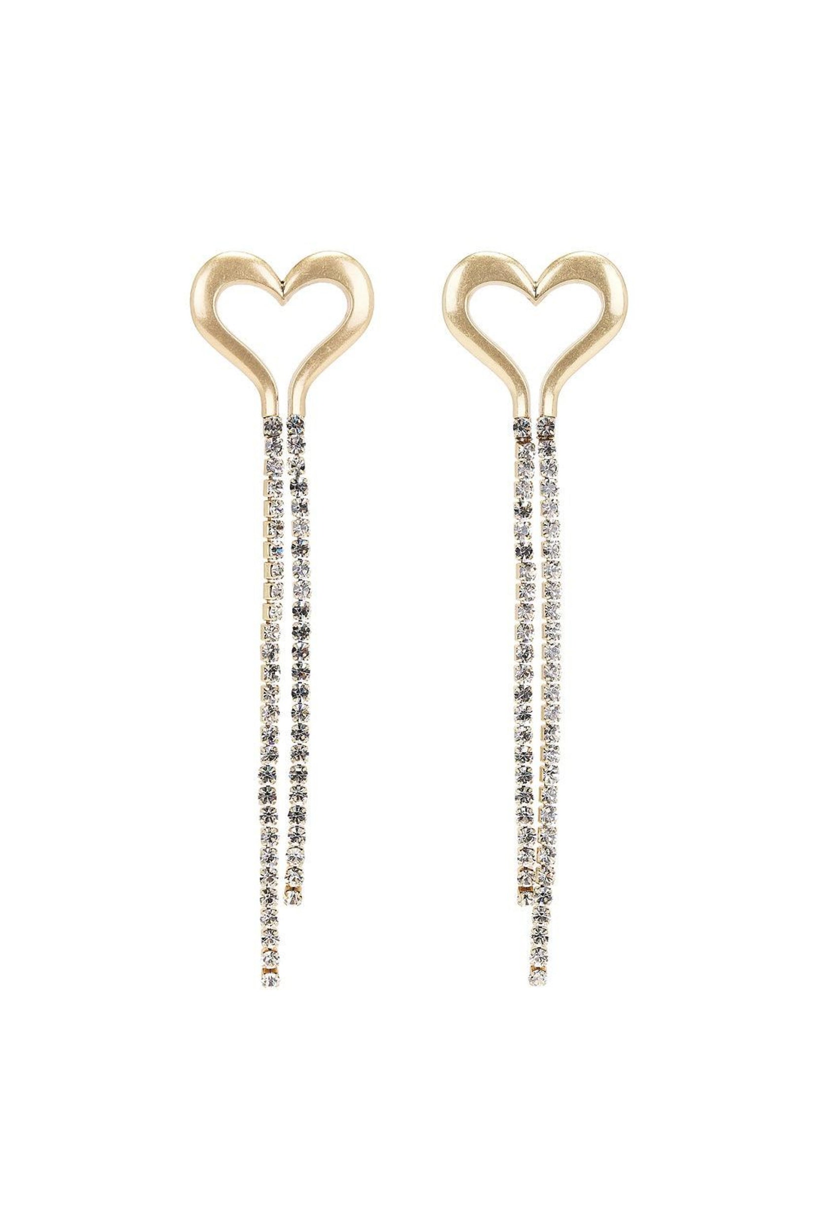 Heart Shape Rhinestone Tassel Drop Earrings