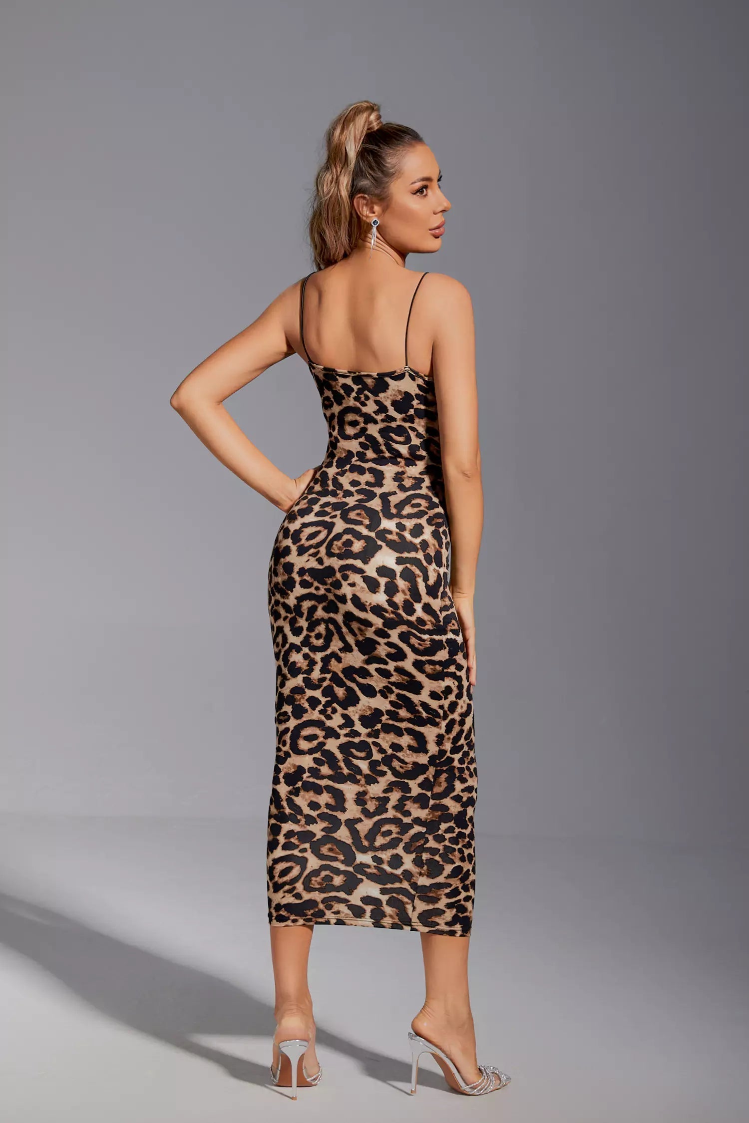 Full of wild glamour, it's our Kailani Leopard Bodycon Dress. The design of the sleeveless long dress with suspenders boldly shows the figure curve. The leopard-print fabric is stretchy and hugs your figure well. With high heels, join the enthusiastic party!