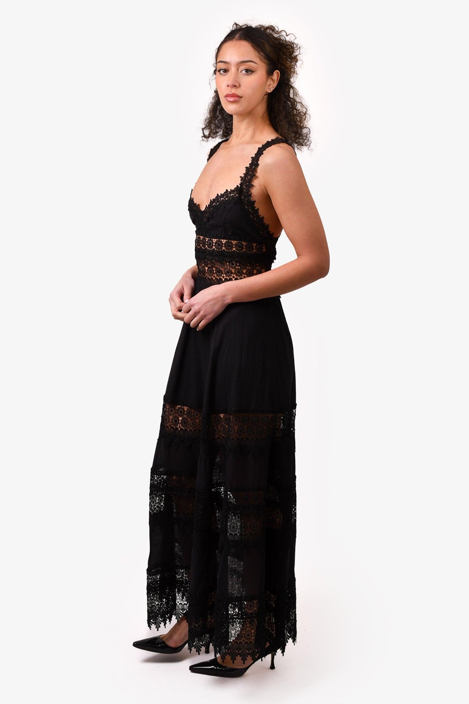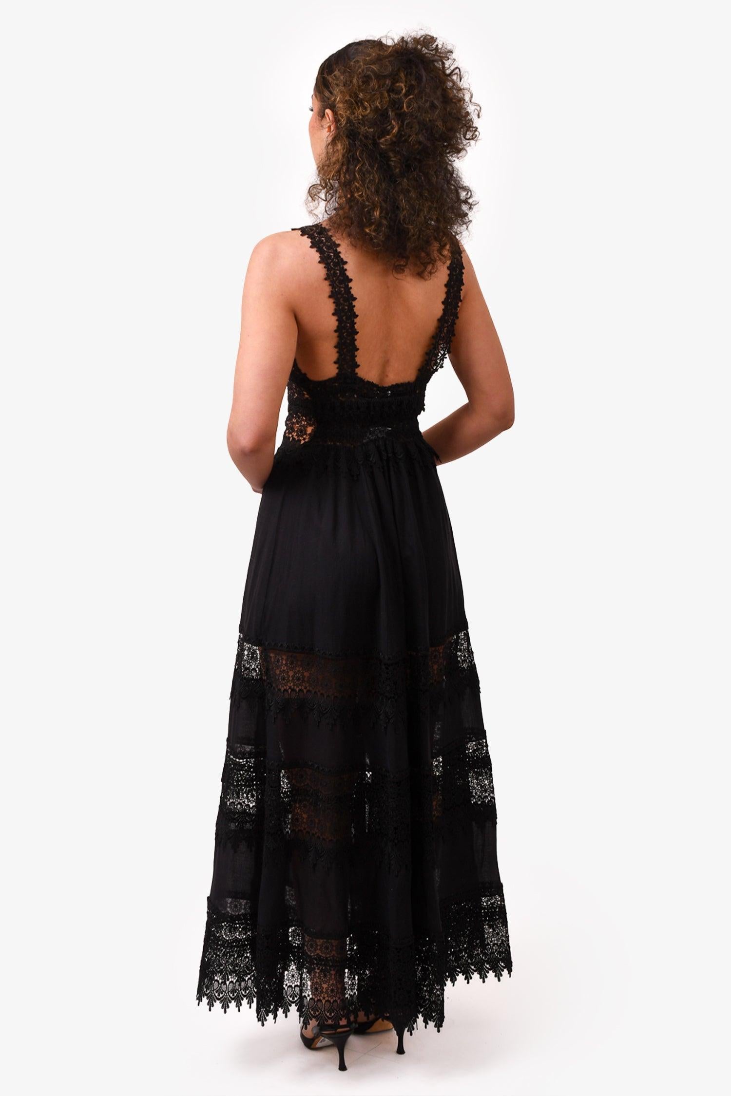 - Sleeveless, solid color, black, lace, splicing, midi dress
