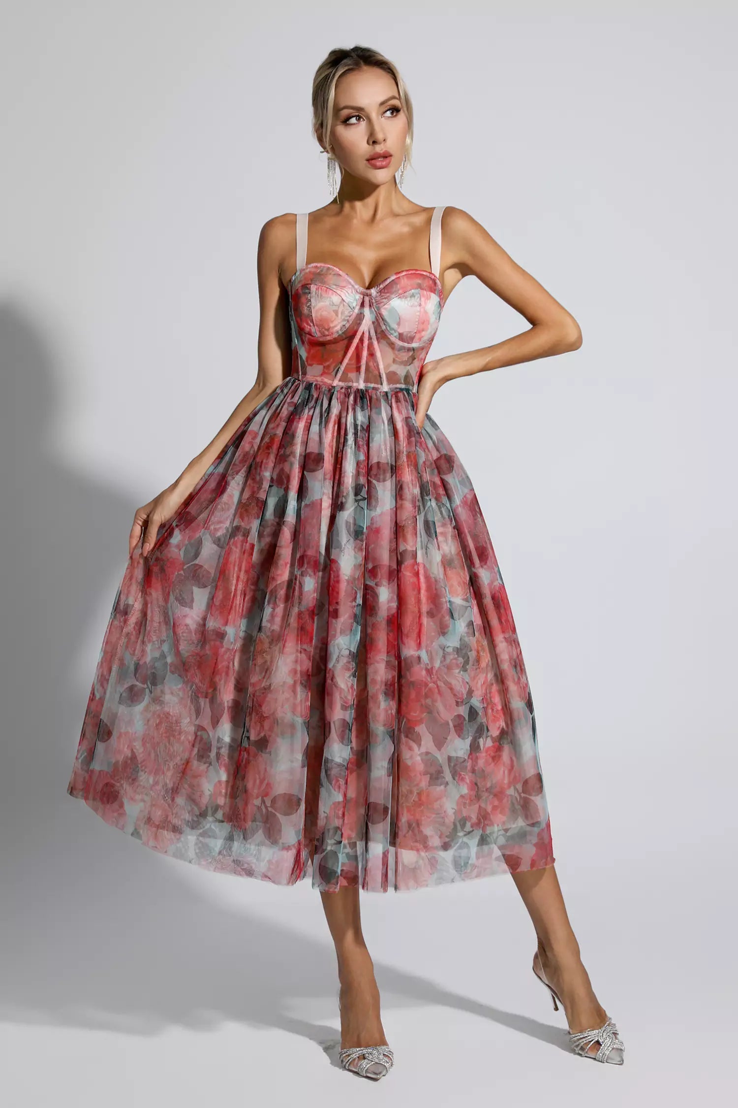 Feel feminine in this Lyric Red Floral Midi Dress. The floral print design adds personality and vitality. Whether it is a weekend party or a beach vacation, this dress will be your best choice. Complete the look with your favorite sandals and accessories.