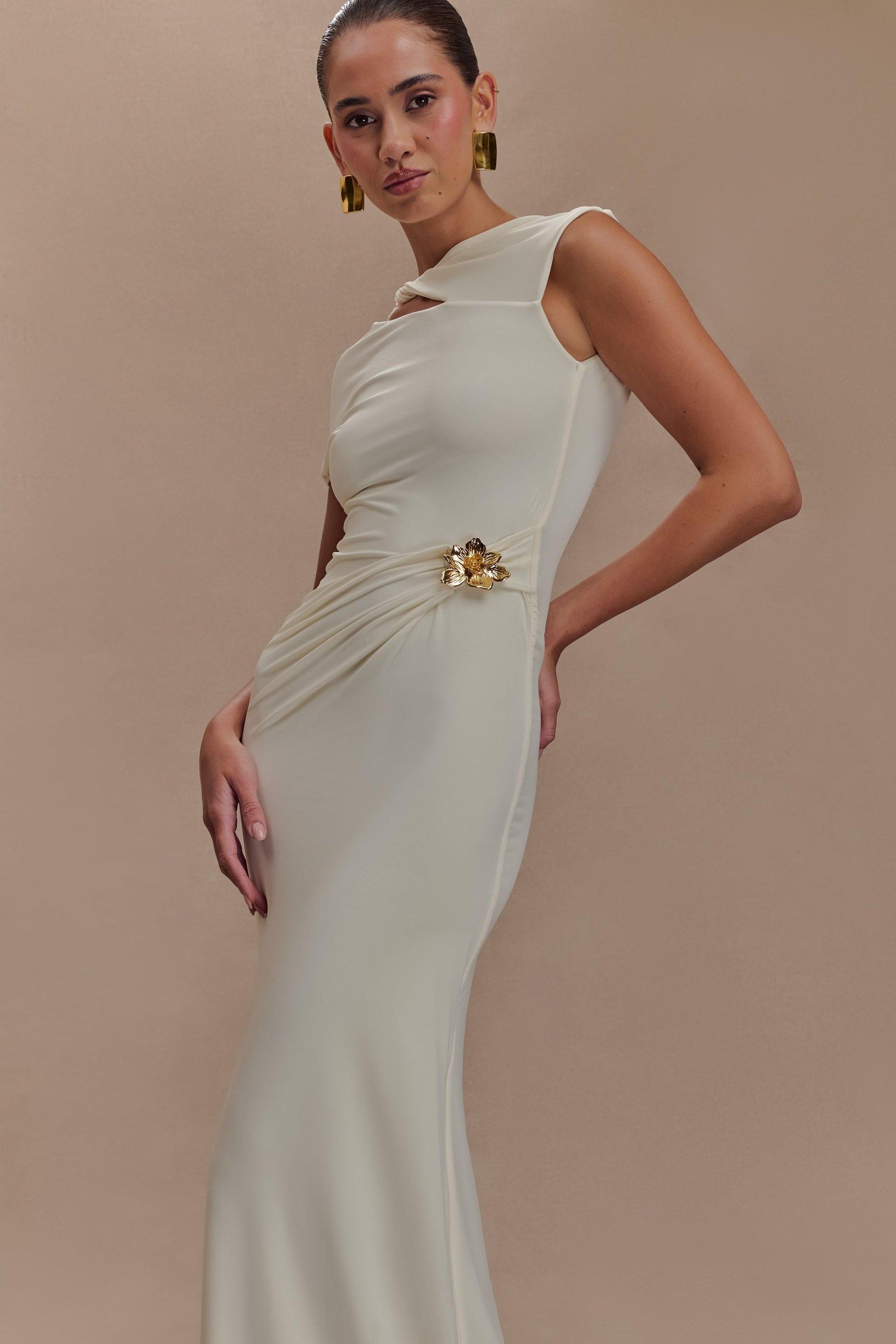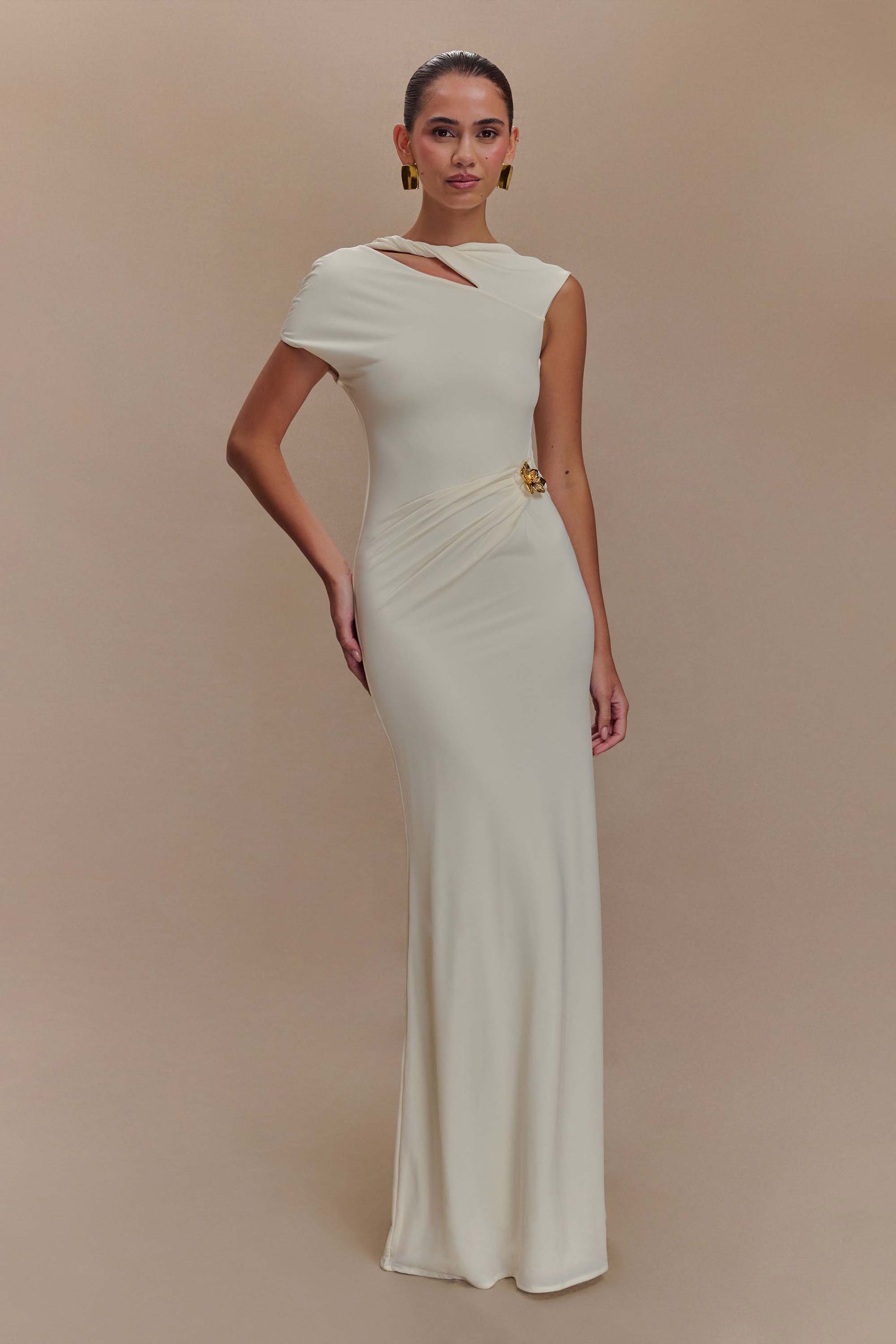 - Short sleeve, solid color, white, cut-out, maxi dress