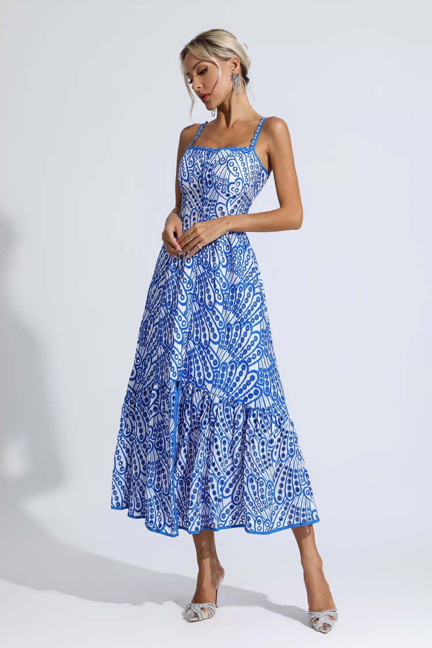 Michelle Blue Printed Maxi Dress will enchant you! Make this dress your new favorite. Floral-print fabric frames this casual dress. Cutout design for added chic. Just a pair of flat shoes, sandals or high heels is all you need to complete a simple and stylish look!